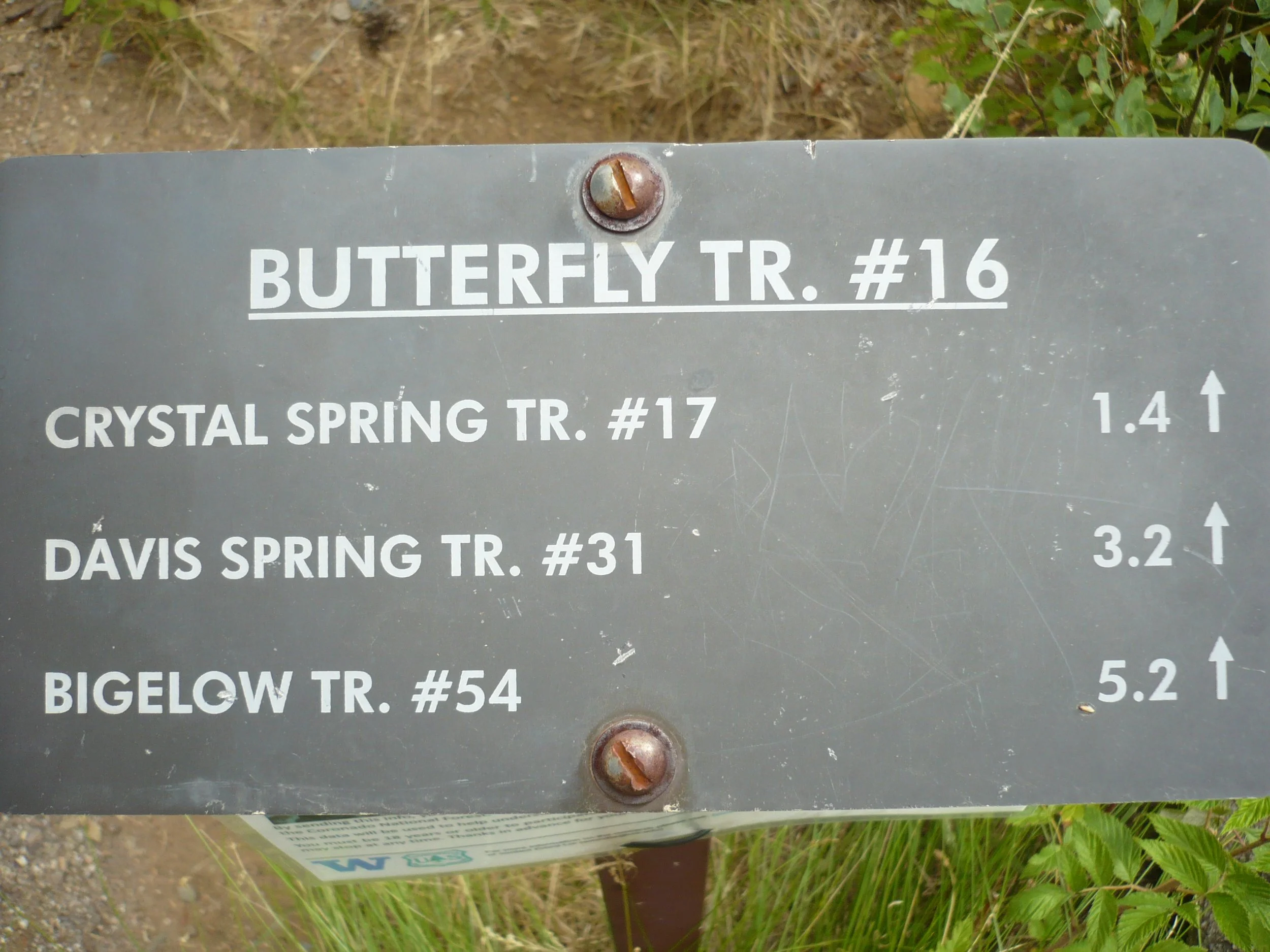 Connecting Trails: Crystal Spring Trail #17 goes off to the north. Davis Spring Trail #31 goes off to the east and ends in about a mile. Butterfly Trail #16 connects with Bigelow Trail #54 and Incinerator Ridge Trail at Bigelow Saddle. Incinerator Ridge Trail is not listed on the southeastern trailhead sign, but it is part of the “Lemmon Drop” that is very popular with mountain bikers.